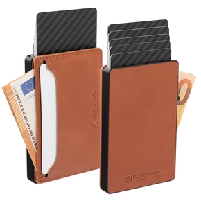 Pánská kožená peněženka s vnější kapsou na karty a hliníkovým pouzdrem (hnědá)