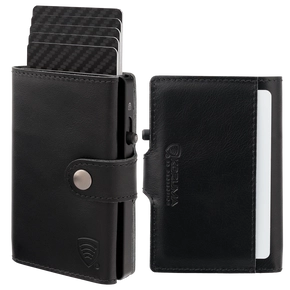 Pánská kožená peněženka s vnější kapsou na karty a hliníkovým pouzdrem (černá)