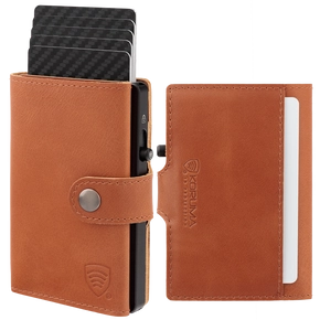 Pánská kožená peněženka s vnější kapsou na karty a hliníkovým pouzdrem (hnědá)