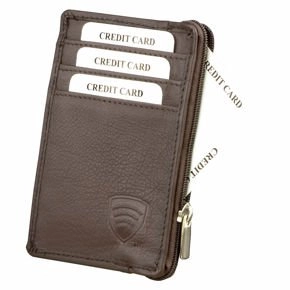 Malá kožená peněženka na karty na zip (hnědá)