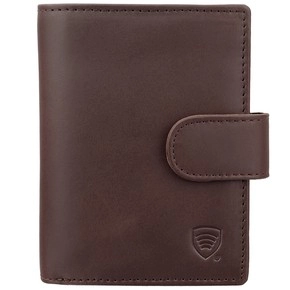 Kožená vertikální peněženka RFID se zapínáním (hnědá)