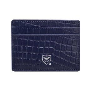 Kožené pouzdro proti krádeži na bezkontaktní karty RFID (námořnická modrá, Croco)