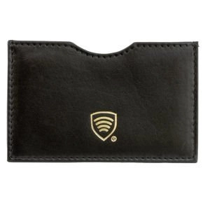 Kožené pouzdro na platební karty s blokováním RFID a stříbrným logem (černé)
