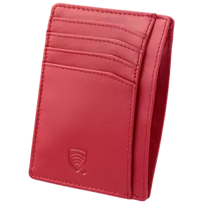 Hliníkové pouzdro s gumičkou pro bezkontaktní karty RFID (dřevo + červená pryskyřice)