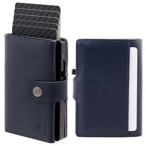 Pánská kožená peněženka s vnější kapsou na karty a hliníkovým pouzdrem (tmavě modrá)