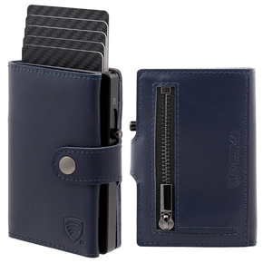 Pánská kožená peněženka s kapsou na mince a hliníkovým pouzdrem (tmavě modrá)