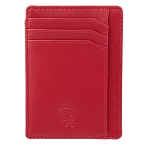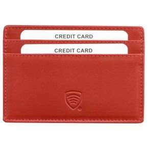 Ochranné kožené pouzdro na kreditní a bezkontaktní karty s okénkem (červené)