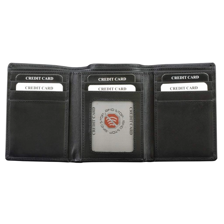 Kožená trojkomorová peněženka na ochranu bezkontaktních karet (černá)