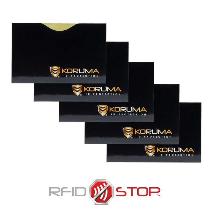 Pouzdro na bezkontaktní karty - Koruma (horizontální, černé, zlaté logo) sada 5ks.