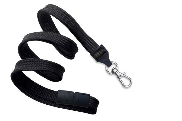 Široká 10mm bezpečná nastavitelná šňůrka na odznak + karabina KRAB (černá)