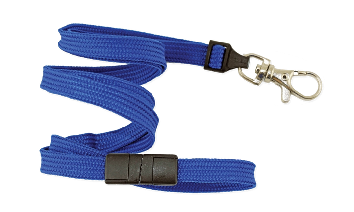 Široká 10mm bezpečná nastavitelná šňůrka na odznak + karabina KRAB (modrá)