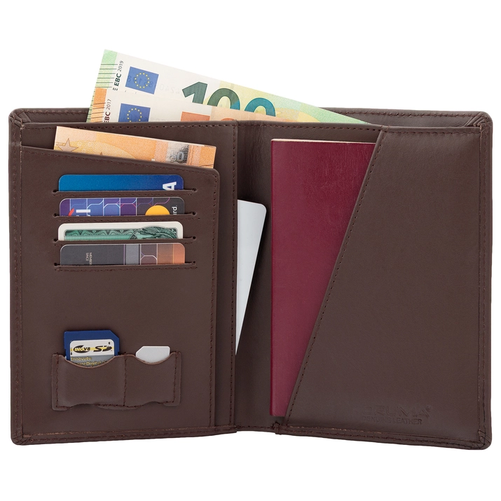 Kožená peněženka na platební karty a doklady, např. biometrický pas nebo technický průkaz. Pouzdro je vyrobeno z přírodní kůže v hnědé barvě. Kromě výše zmíněných karet a dokladů je v peněžence místo na SD nebo jinou paměťovou kartu a SIM kartu mobilního telefonu. Peněženka má zabudovanou ochranu RFID BLOCK™, která zabezpečuje všechny bezkontaktní doklady, které lze přečíst na dálku bez dotyku čtečky.