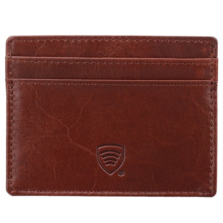 Kožené pouzdro na bezkontaktní karty s ochranou proti krádeži (hnědé)