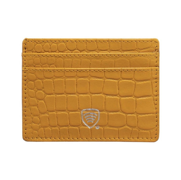 Kožené pouzdro proti krádeži na bezkontaktní karty RFID (žluté, Croco)
