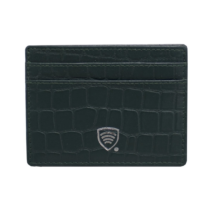 Kožené pouzdro proti krádeži na bezkontaktní karty RFID (zelené, Croco)