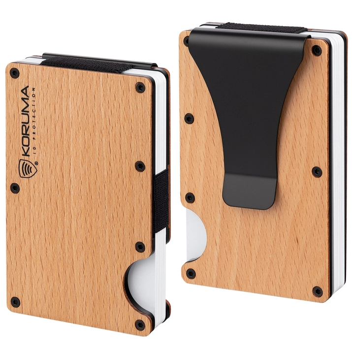 Do pouzdra se vejde až 12 karet velikosti kreditní karty, takže do něj můžete úspěšně uložit i občanský a řidičský průkaz. Karty v pouzdře drží na místě pružná gumička (druhá náhradní gumička je součástí balení), která zabraňuje vypadnutí karet z pouzdra. Na zadní straně pouzdra je klip, který lze použít k umístění bankovek pod pouzdro nebo k připevnění pouzdra k opasku kalhot. Klip je vyroben z pružinové oceli, což znamená, že se vždy vrátí do původní polohy a nehrozí, že by se nevratně zdeformoval a noty samovolně vypadly.