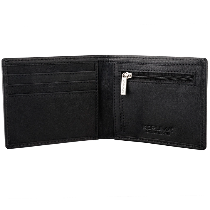 ✓ Elegantní lehce lesklá černá kůže dotváří vzhled a dělá z této peněženky dokonalou tenkou peněženku, která by neměla chybět v kapse žádného moderního muže. Perfektně se hodí k saku nebo kalhotám a nekazí vzhled.