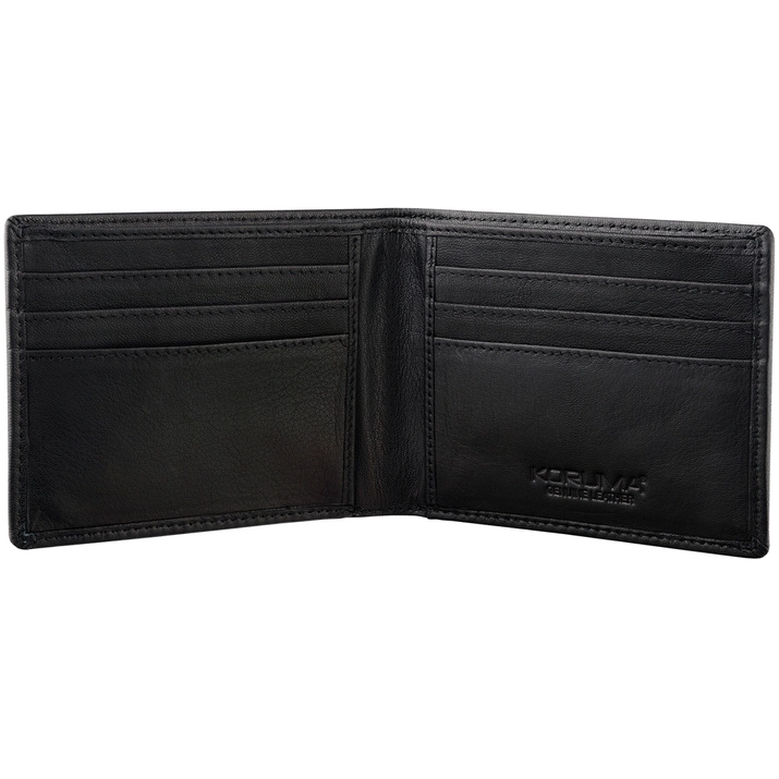 ✓ Elegantní lehce lesklá černá kůže dotváří vzhled a dělá z této peněženky dokonalou tenkou peněženku, která by neměla chybět v kapse žádného moderního muže. Perfektně se hodí k saku nebo kalhotám a nekazí vzhled.
