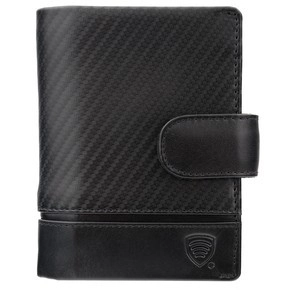 Pánská kožená peněženka na karty a mince s ochranou RFID BLOCK (černá, karbon)